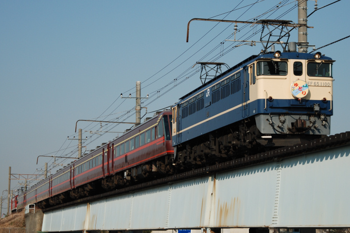 ▲9811レ EF65 1100(「ゆとり」正調HMつき)+14系改「ゆとり」+EF65 1118